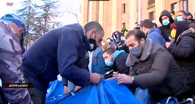 პარლამენტთან საპროტესტო კარავი გაშალეს
