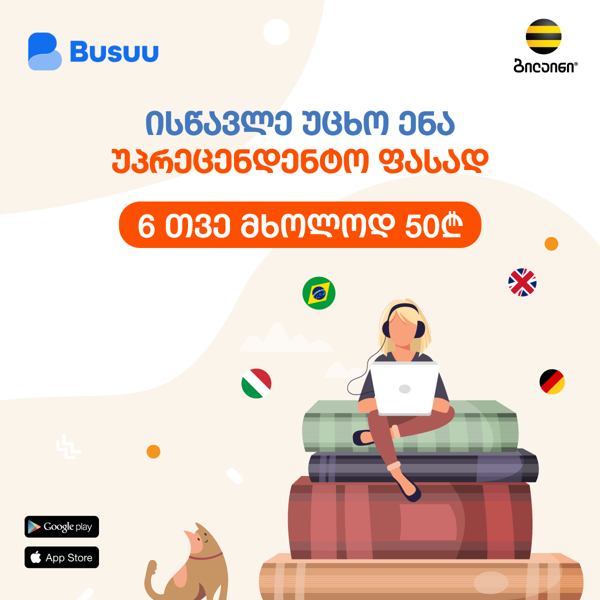 ბილაინის მომხმარებლებს შესაძლებლობა აქვთ ისწავლონ უცხო ენა ნახევარ წელიწადში მხოლოდ 50 ლარად
