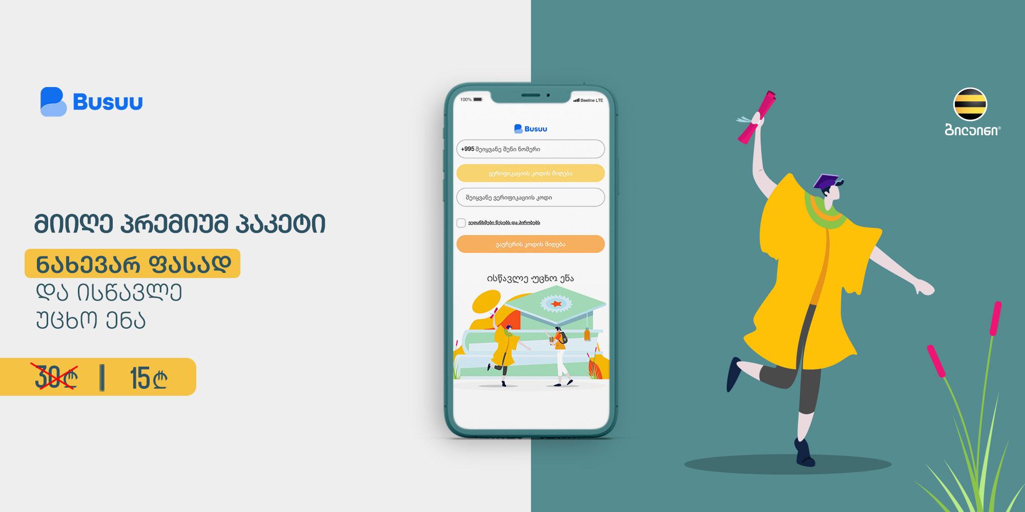ბილაინის მომხმარებლებს უცხო ენის შესწავლა თვეში მხოლოდ 15 ლარად შეუძლიათ
