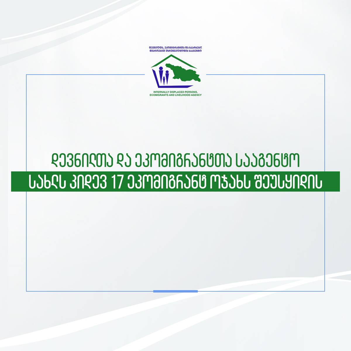 დევნილთა და ეკომიგრანტთა სააგენტო სახლს კიდევ 17 ეკომიგრანტ ოჯახს შეუსყიდის