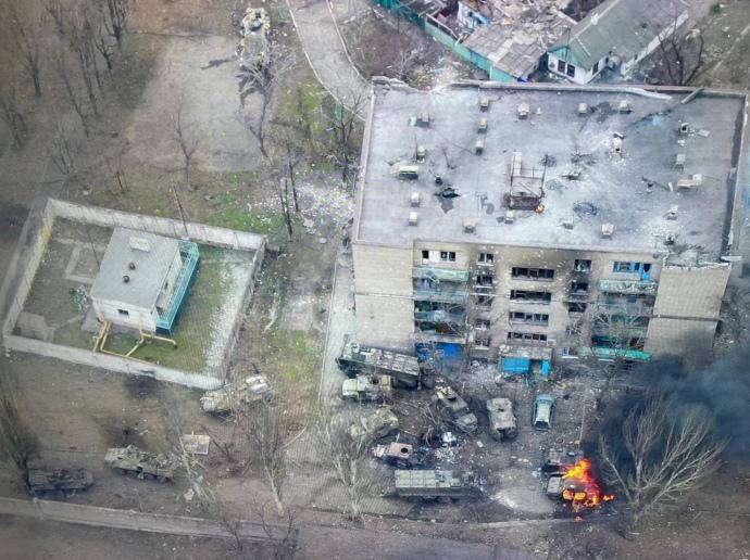 რუსეთის მიერ ოკუპირებულ უკრაინულ ქალაქში ძლიერ აფეთქებებს ხანძარი მოჰყვა