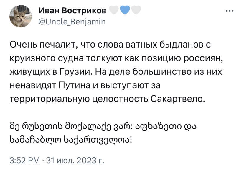 საქართველოში მცხოვრები რუსეთის მოქალაქეების ნაწილმა ფლეშმობი #Ватный кремлевский корабль, иди на *** დააორგანიზა