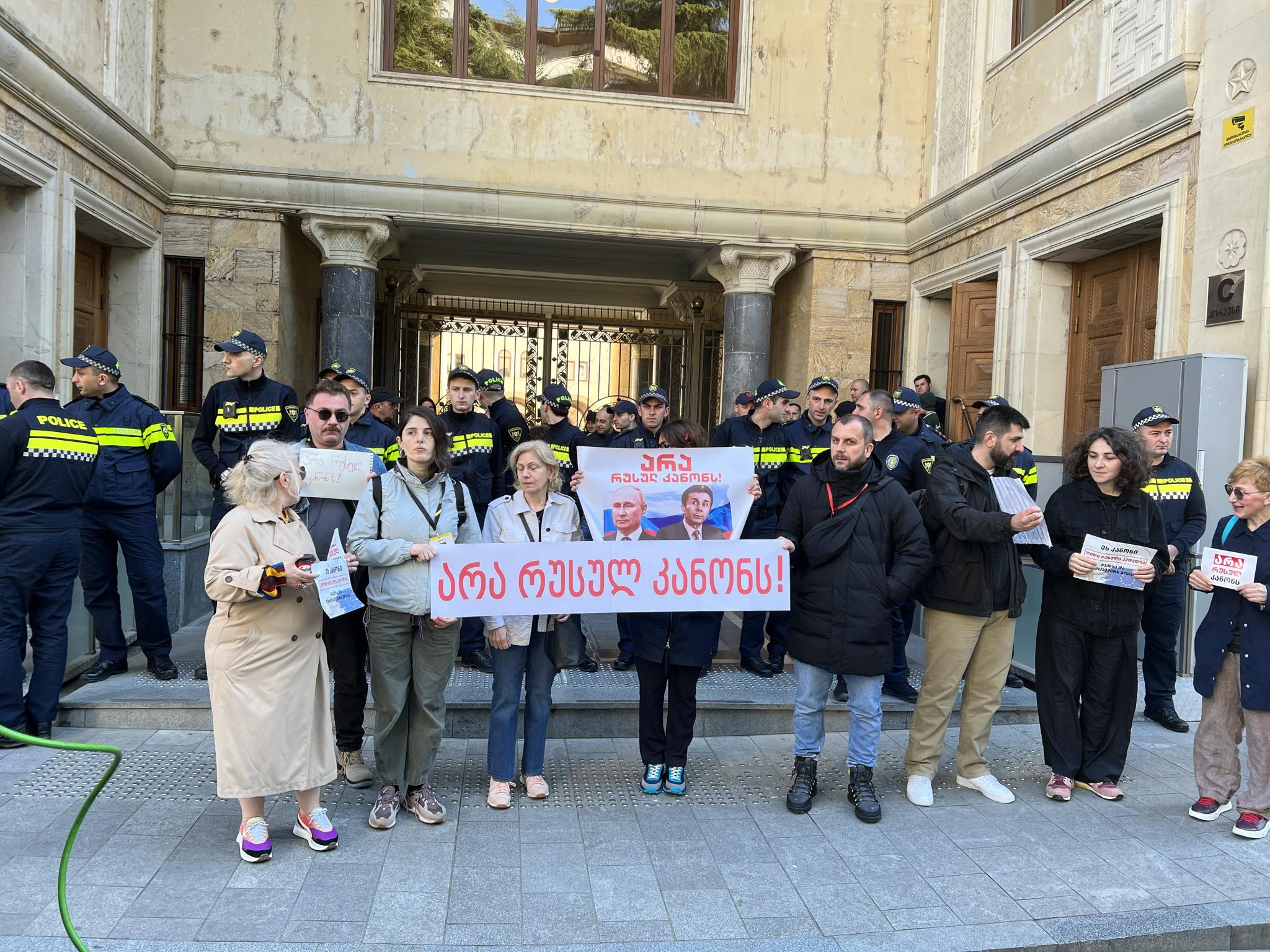 პარლამენტის უკანა შესასვლელთან აქცია მიმდინარეობს