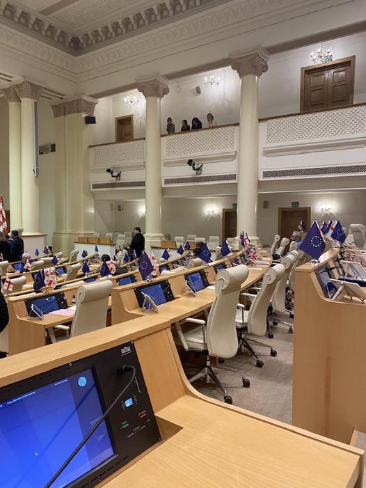 პარლამენტის პლენარული სხდომა შალვა პაპუაშვილმა მილოცვით გახსნა, რის შემდეგაც სხდომათა დარბაზში ევროკავშირის ჰიმნი გაჟღერდა