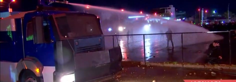პოლიცია დემონსტრანტების წინააღმდეგ წყლის ჭავლს იყენებს