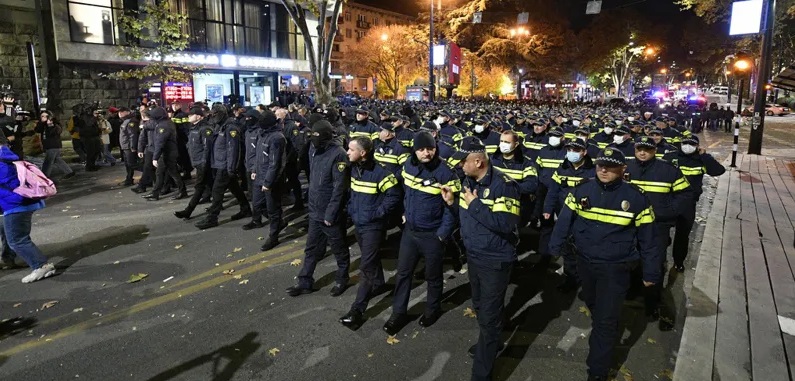 პოლიცია მელიქიშვილის გამზირს მომიტინგეებისგან ათავისუფლებს - დემონსტრანტები ფილარმონიის მიმდებარე ტერიტორიისკენ ინაცვლებენ
