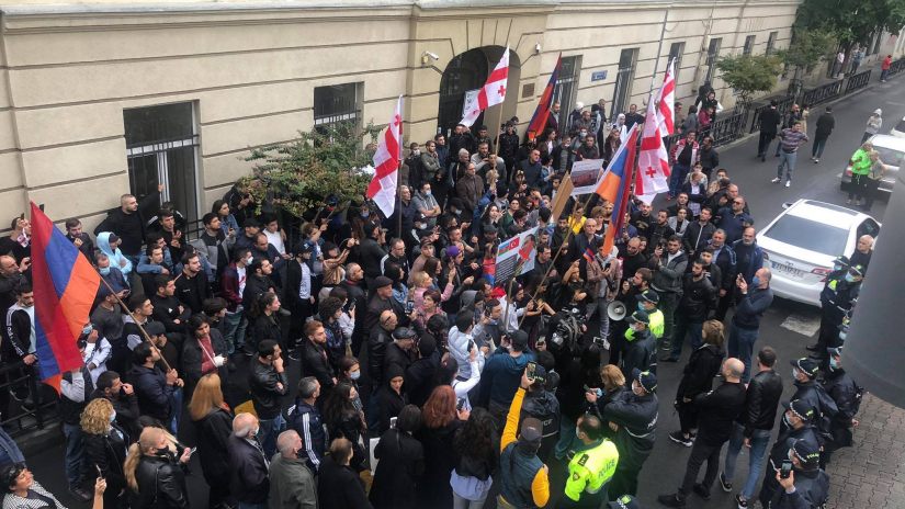 თბილისში მცხოვრებმა ეთნიკურად სომეხმა მოქალაქეებმა "მთავარ არხთან" აქცია გამართეს