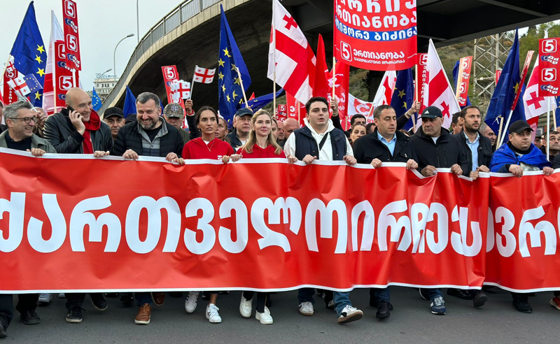 მარშის მონაწილეები მსვლელობით თავისუფლების მოედნისკენ მიემართებიან