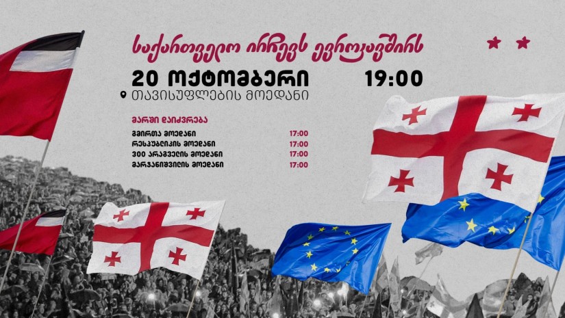20 ოქტომბერს, თბილისში, 5 სხვადასხვა ლოკაციიდან თავისუფლების მოედნის მიმართულებით მარში - „საქართველო ირჩევს ევროკავშირს“ მოეწყობა