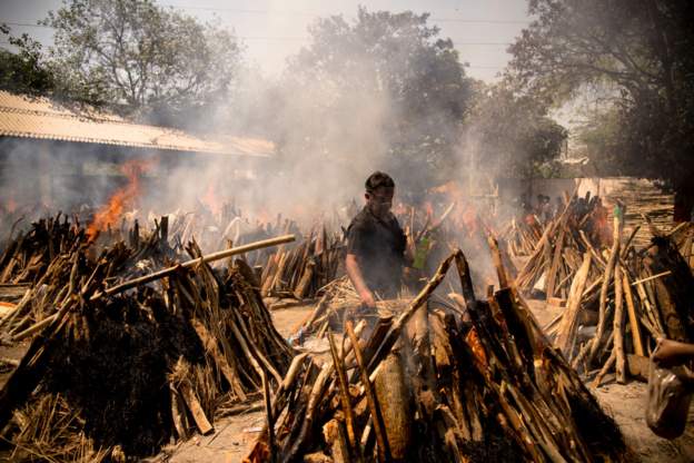 ქვეყანაში კრემატორიუმები სრული დატვირთვით მუშაობენ. თუმცა როგორც BBC იუწყება, ისინი კრემაციას ვეღარ აუდიან და სახელდახელოდ აწყობენ ფართებს კოცონებისთვის, სადაც დაღუპულებს წვავენ.