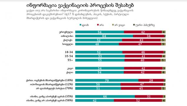 ამავე კვლევის მიხედვით, გამოკითხულთა 42% ამბობს, რომ ვაქცინაციის პროცესთან დაკავშირებით საკმარისი ინფორმაცია არ აქვს.