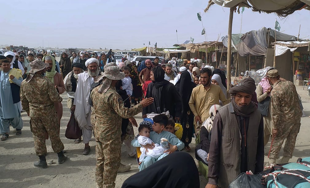 2021 წლის 16 აგვისტო; ავღანელი ოჯახი, რომელიც პაკისტანში გადასვლას ცდილობდა და უკან გამოაბრუნეს; ფოტო – AFP/Getty Images.