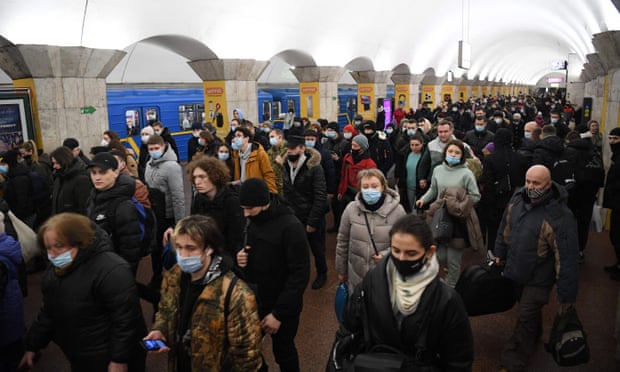 გამოცემის ინფორმაციით, დილიდან ხალხი მიაწყდა კიევის მეტროს სადგურებს ხელბარგებით.