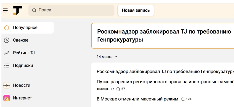 Сайт TJ заблокирован по требованию Генпрокуратуры