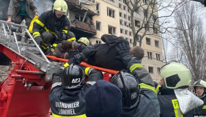 В Киеве снаряд попал в девятиэтажный дом, есть погибшие