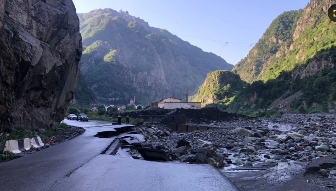 Вышедший из берегов Терек повредил дорогу на границе Грузии и России